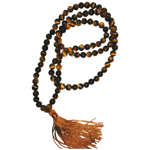 Japamala de 108 contas, feito com pedras naturais de olho de tigre e tassel marrom